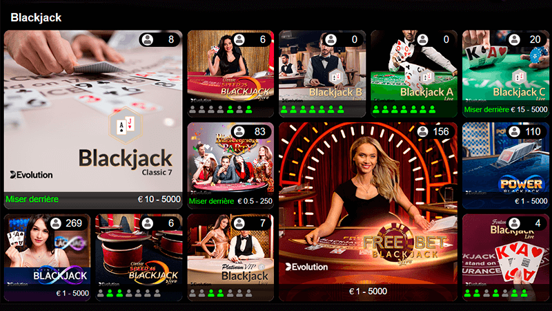 Il se décline sous ses variantes les plus populaires à savoir Blackjack First Person, Speed Blackjack, Blackjack Switch, Blackjack Party et Blackjack Vegas Dowtown.