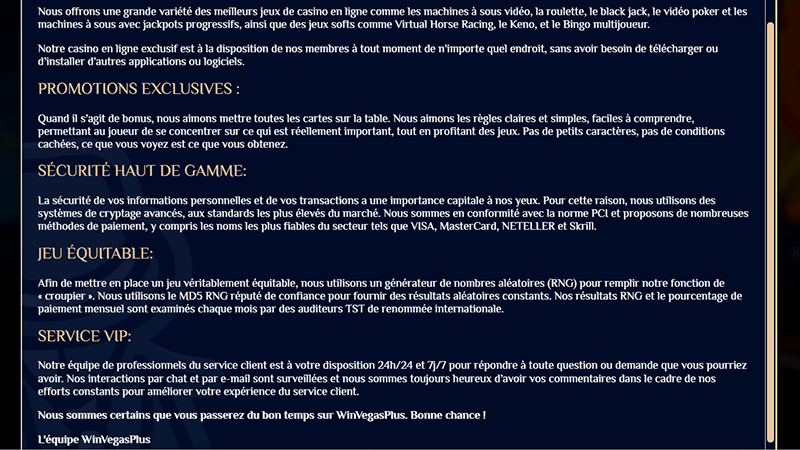 Les opérateurs de Vegas Plus Casino France ont tout mis en œuvre pour reproduire la même expérience que celle proposée dans les casinos terrestres.