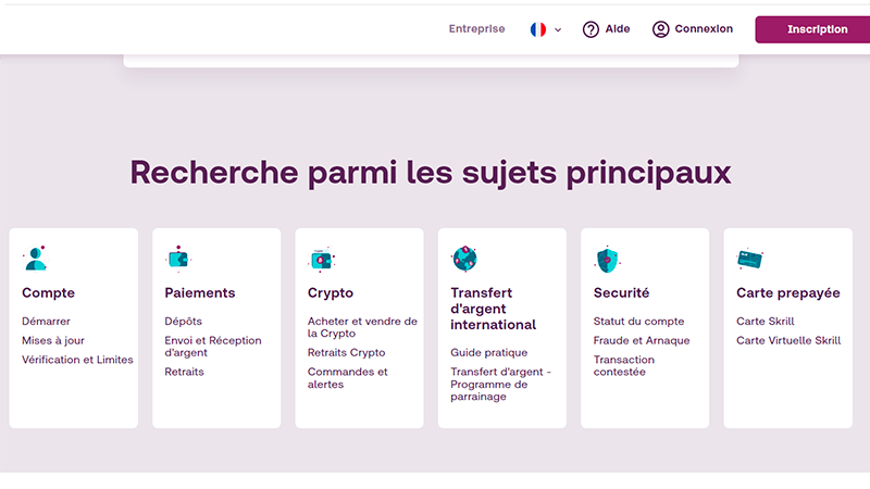 Ainsi, en cas de problèmes, il vous suffit de vous rendre sur le site officiel de Skrill et d’accéder à sa page d’assistance.
